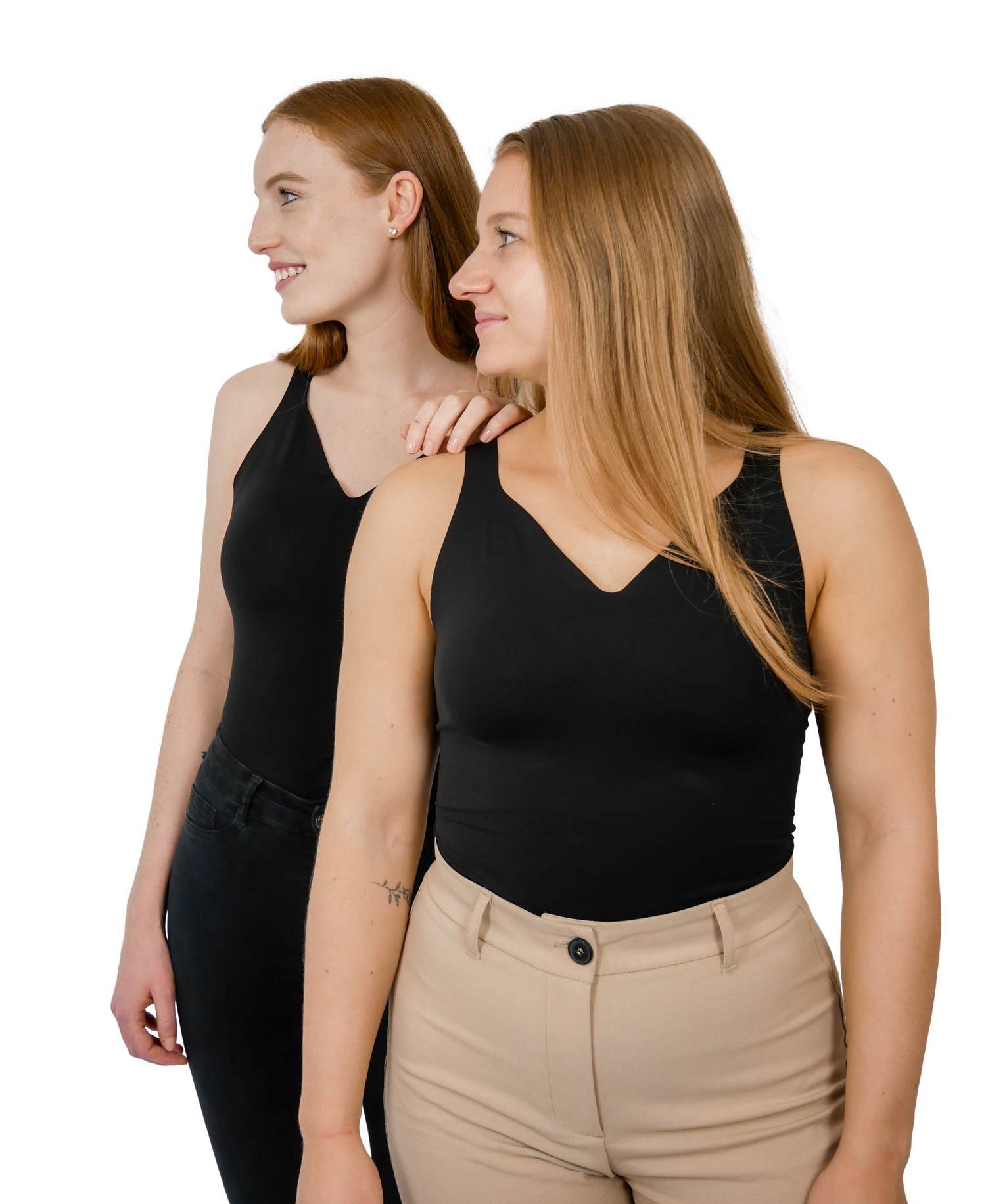 Unsere nahtlosen Tops kommen mit vorgeformten, eingearbeiteten und patentierten Cups. Sie bieten optimalen Halt und einen 24/7 Tragekomfort eines trägerlosen BHs. Ganz ohne lästige Bügel und kratzendem Rückenverschluss lassen sich unsere braless Tops unter dem Shirt tragen. Durch die perfekte Passform passt sich die angenehme Textur unseres braless Tops nicht nur den Kurven des Körpers an, sondern sitzt rutschfest am Körper und kräuselt sich nicht unvorteilhaft.
